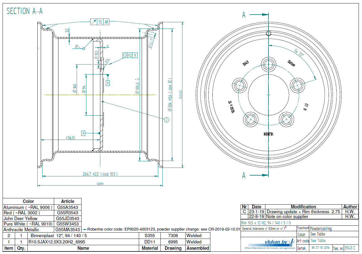 Wheel rim: 10.50IX12 | 94/140/5 |Studhole Ø18,5 |Yellow