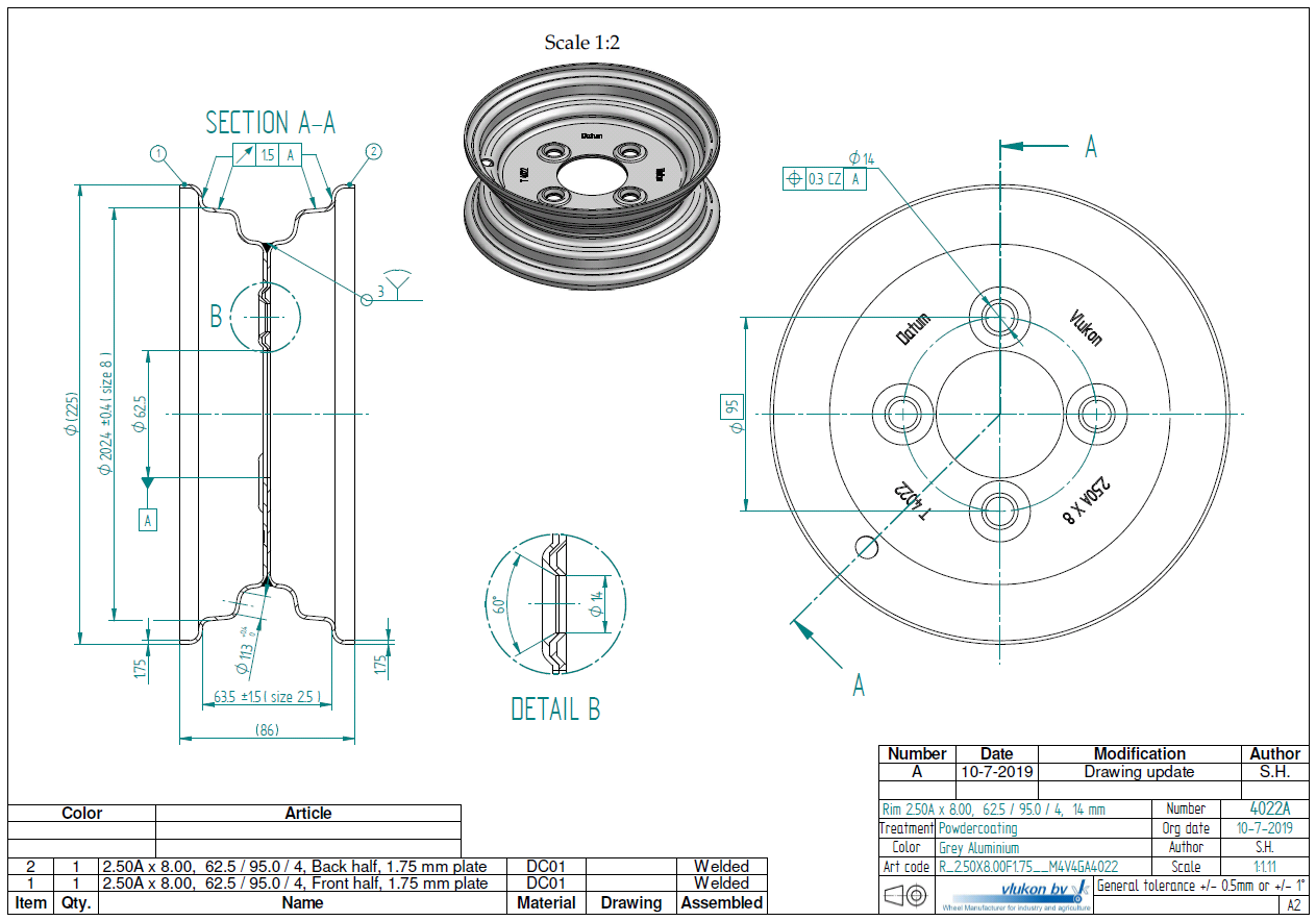 1.75 mm thick one piece welded RIM, diameter: 8 inch, width: 2.50 inch, pcd: 95mm & center bore: 62,5mm l 4 Raised bolt holes