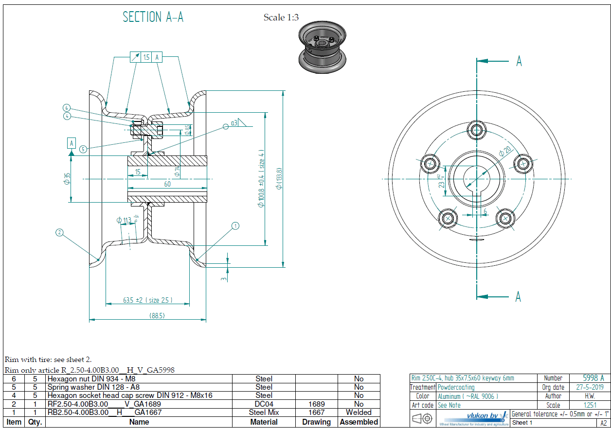 3.00 mm thick two piece divided rim | diameter: 4 inch | width: 2.50 inch | bearing in hub: