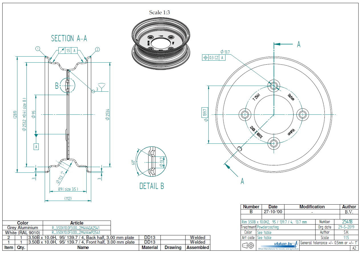 3.00 mm thick one piece welded RIM, diameter: 10 inch, width: 3.50 inch, pcd: 139,7mm & center bore: 95mm l 4 Raised bolt holes