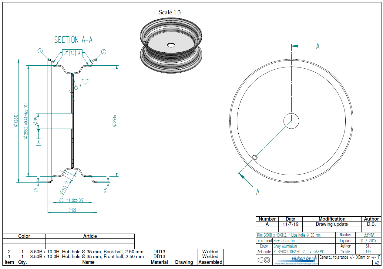 2.50 mm thick one piece welded RIM, diameter: 10 inch, width: 3.50 inch,