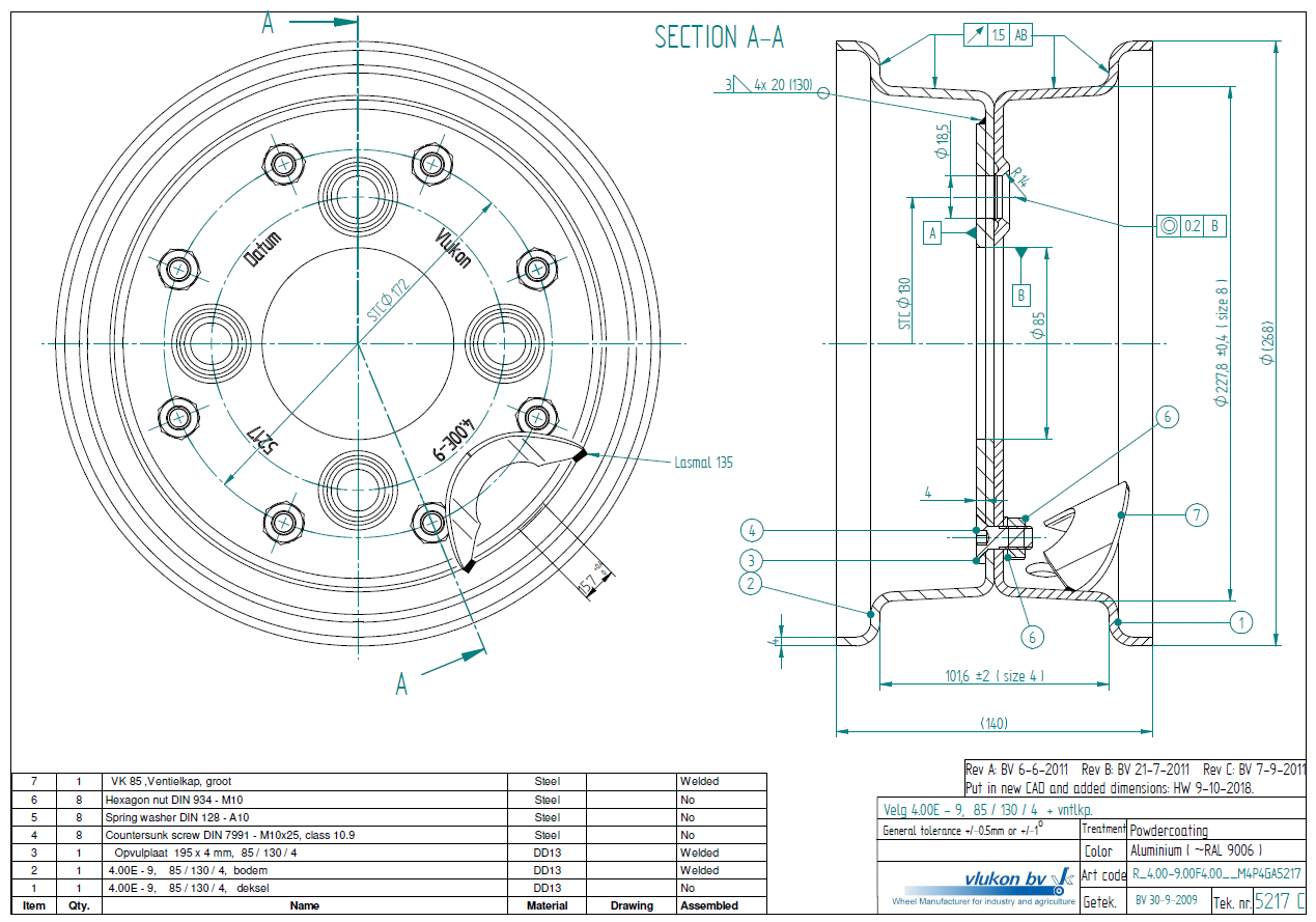 4.00 mm thick two piece divided rim | diameter: 9 inch | width: 4.00 inch | pcd: 130mm & center bore: 85mm l 4 Raised bolt holes