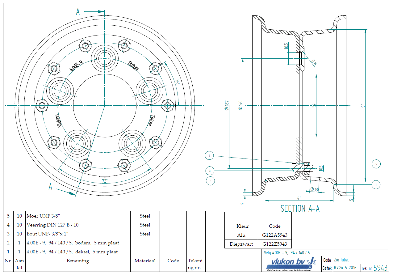 Rim size 4.00E-9 | 5.00 mm thick divided RIM | diameter: 9 inch | width: 4.00 inch | pcd: ...