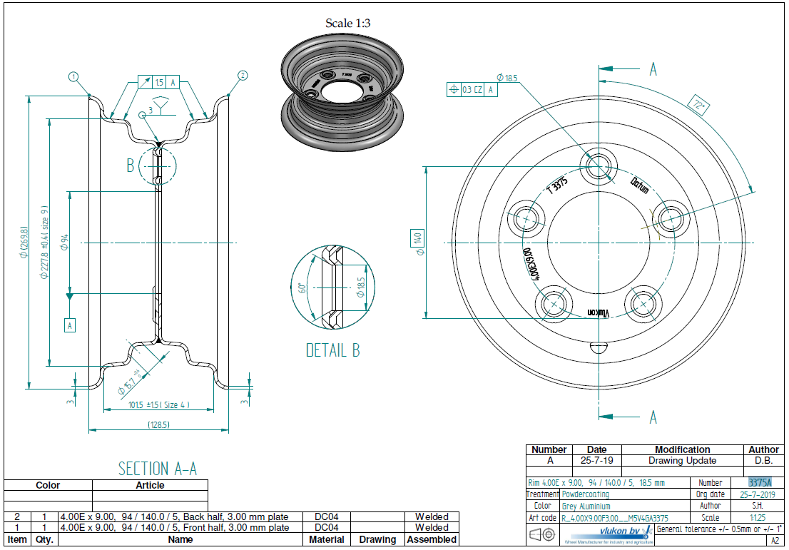 3.00 mm thick one piece welded RIM, diameter: 9 inch, width: 4.00 inch, pcd: 140mm & center bore: 94mm l 5 Raised bolt holes