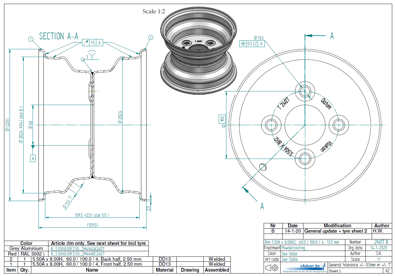A - Type: Welded wheel rim for a pneumatic or solid rubber tyre