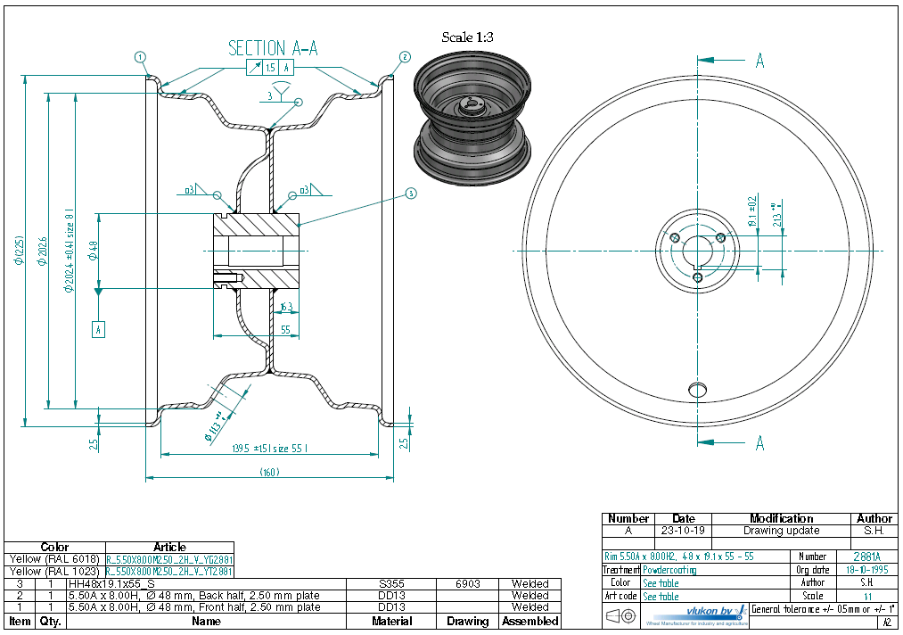 Rim size 5.50AX8H2 | VLUKON wheel ? Tire: | On Rim: 2.50 mm thick one piece welded RIM, d...