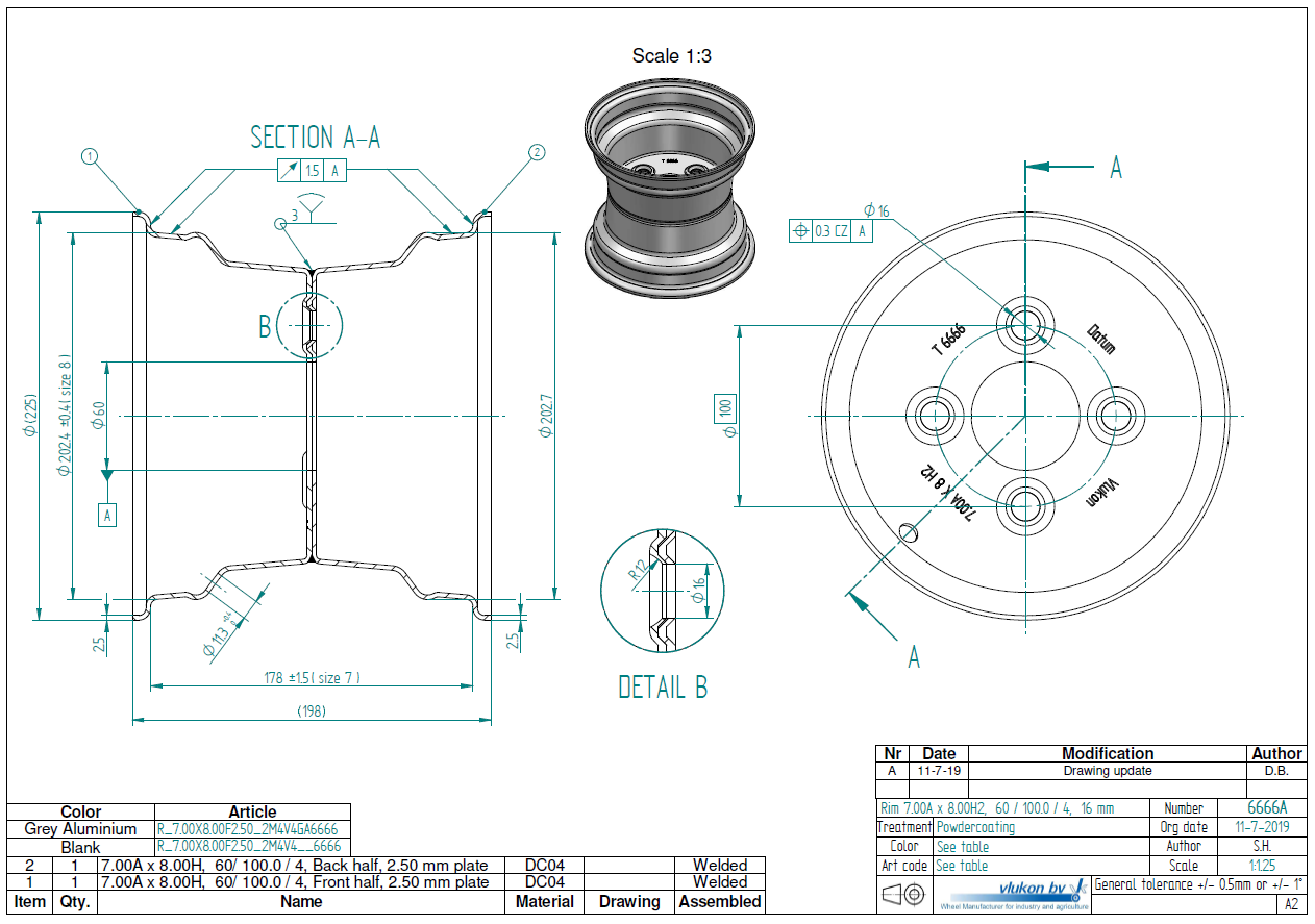 Rim size 7.00AX8H2 | 2.50 mm thick one piece welded RIM, diameter: 8 inch, width: 7.00 inc...