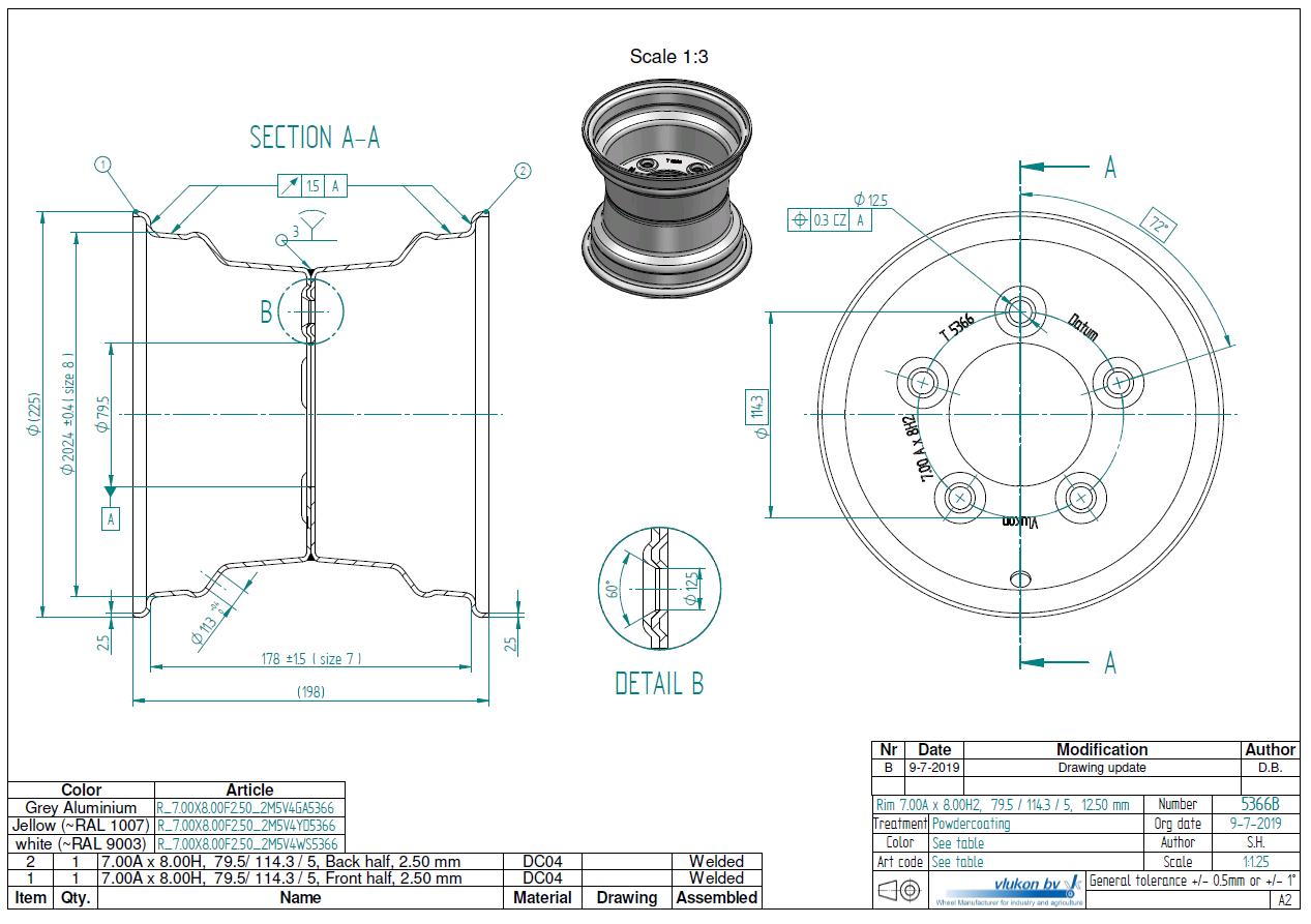 Wheel rim: 7.00AX8 | 79,5/114,3/5 |Studhole Ø12,5 |Yellow