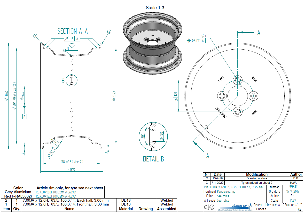 Rim size 7.00JAX12H2 | 3.00 mm thick one piece welded RIM, diameter: 12 inch, width: 7.00 ...