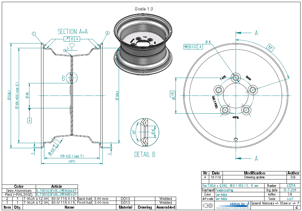 Rim size 7.00JAX12H2 | 3.00 mm thick one piece welded RIM, diameter: 12 inch, width: 7.00 ...