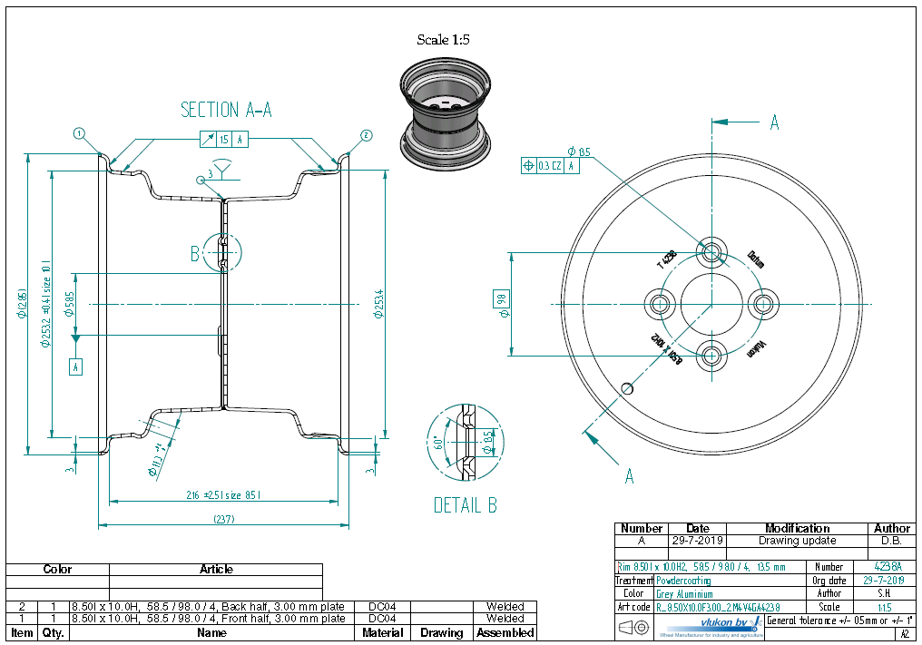 Rim size 8.50IX10H2 | 3.00 mm thick one piece welded RIM, diameter: 10 inch, width: 8.50 i...