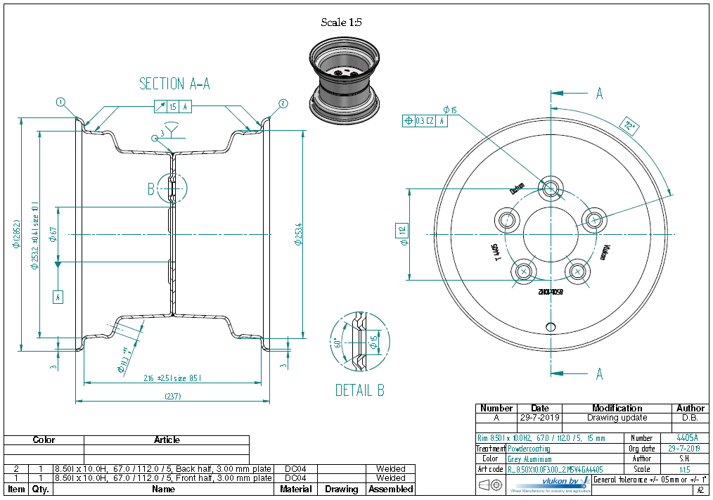 Rim size 8.50IX10H2 | 3.00 mm thick one piece welded RIM, diameter: 10 inch, width: 8.50 i...